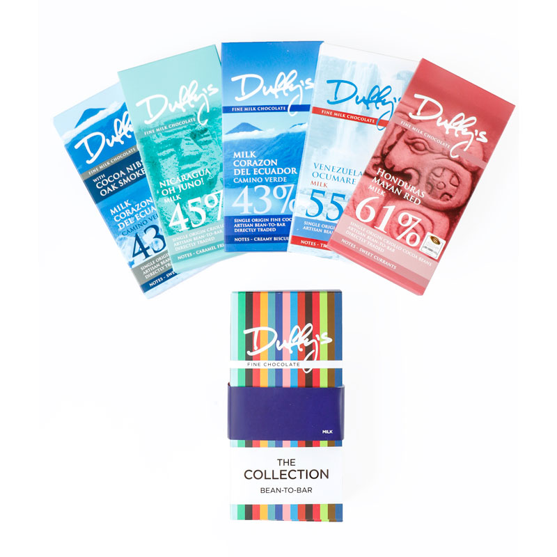 5 bars of fine milk chocolate in a presentation sleeve - a great gift.