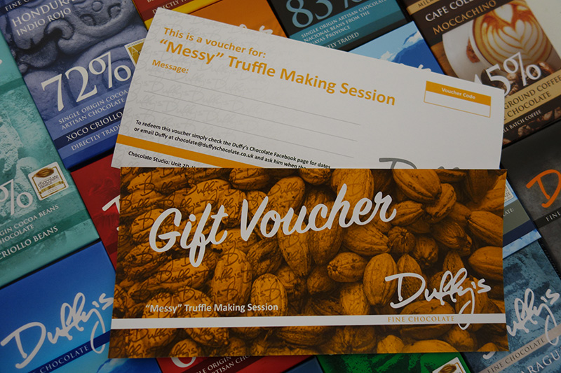 Send someone a voucher for one of our "Messy" truffle making classes. We make and decorate a bar of chocolate, truffles and chocolate buttons and have a look around the factory to see how we make chocolate. We taste some of our bars of course before wrapping everything nicely. They will take away everything that they make. The sessions last about 90 minutes. Based at the Chocolate Studio in Humberston, Cleethorpes, DN36 4BJ. These sessions are for adults, but we do run sessions for kids too. Email for details. Dates will be on our Facebook page or email us and suggest a date that works for you and we will try and accommodate you.