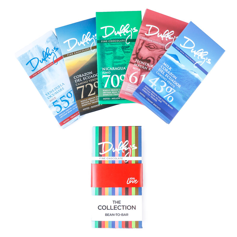 5 bars of Duffy's Fine Chocolate in a "With Love" presentation sleeve.
