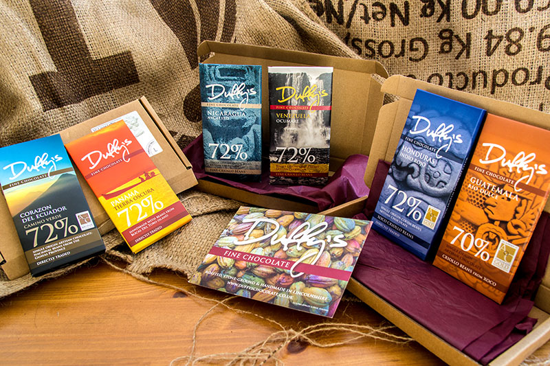 Six different single origin artisan dark chocolate bars - so that the recipient can explore the ranges of flavours available from Duffy's fine single origin chocolate.